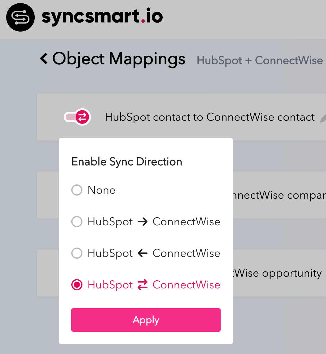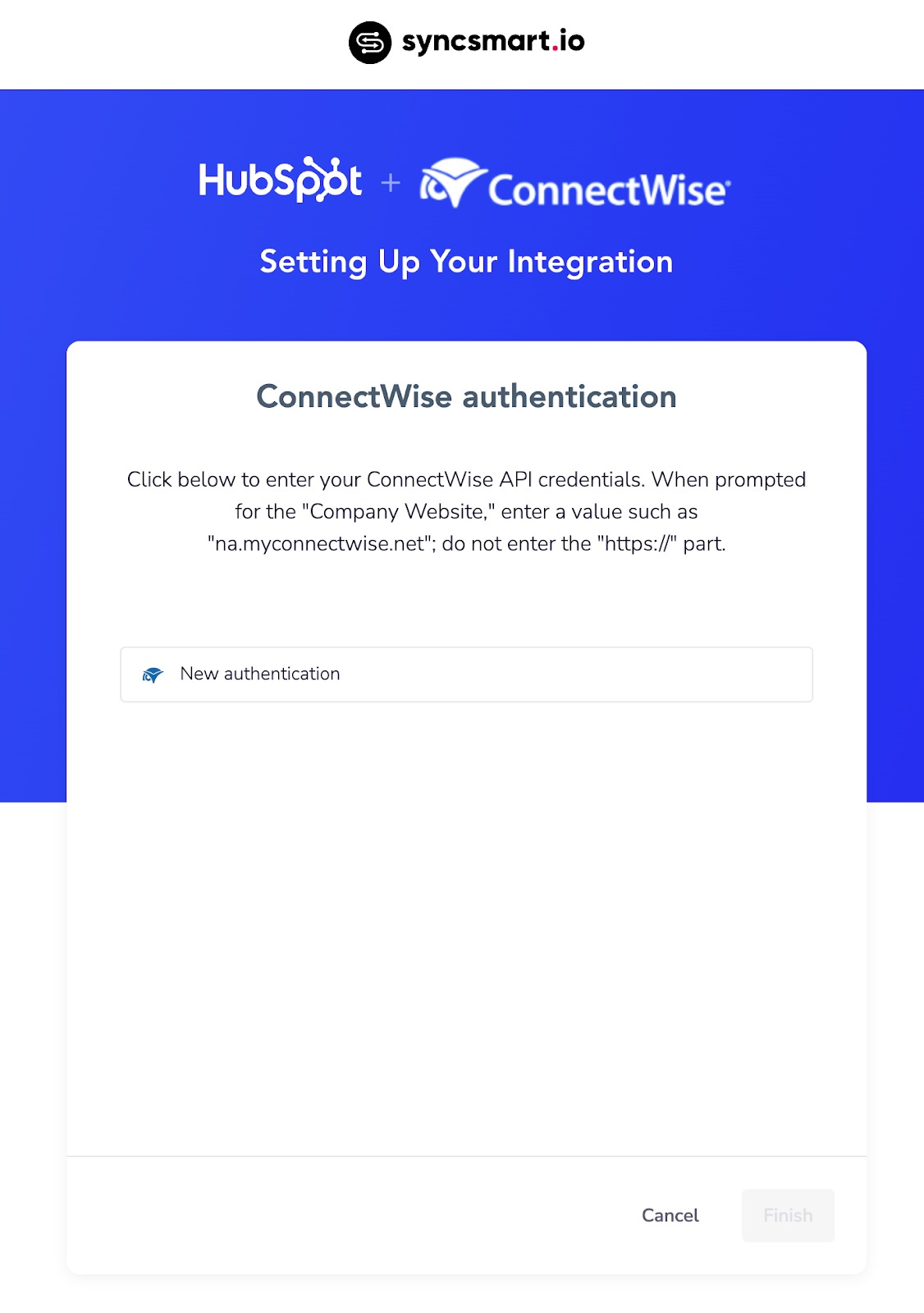 Thank you for installing the HubSpot + ConnectWise integration by SyncSmart.io! This guide will walk you through setting up your sync and help with any spots where you may get stuck.
