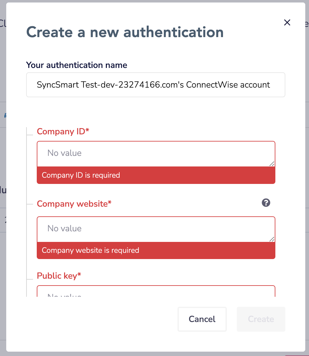 Enter your ConnectWise company website URL. This is the URL used to access your ConnectWise portal. Note that the URL must be entered without “https://www.” Example: “staging.connectwisedev.com.”