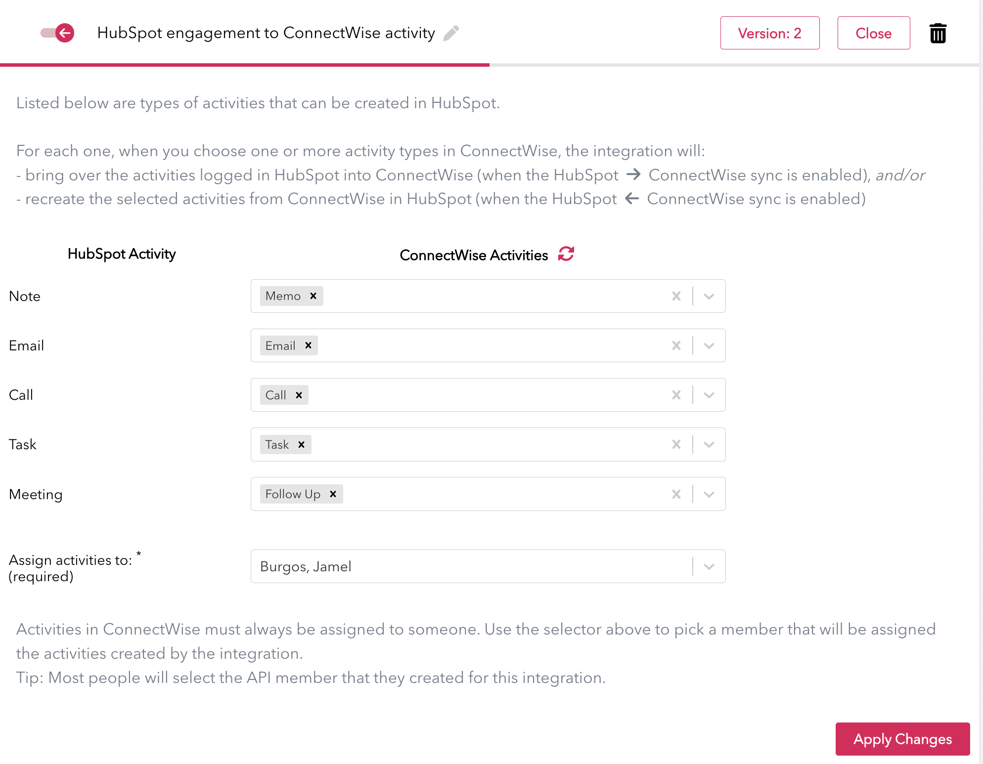 Custom ConnectWise engagements: We can sync from ConnectWise into HubSpot, even if they’re custom types.